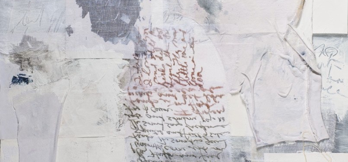 I came to painting by way of poetry. In the process of writing and editing poems I became so absorbed by language, I felt I needed to ground myself and picked up the brush. Everything I learned about the process of writing pertains also to painting and collage. Writing itself becomes the subject of the work in my “Handwriting” series.